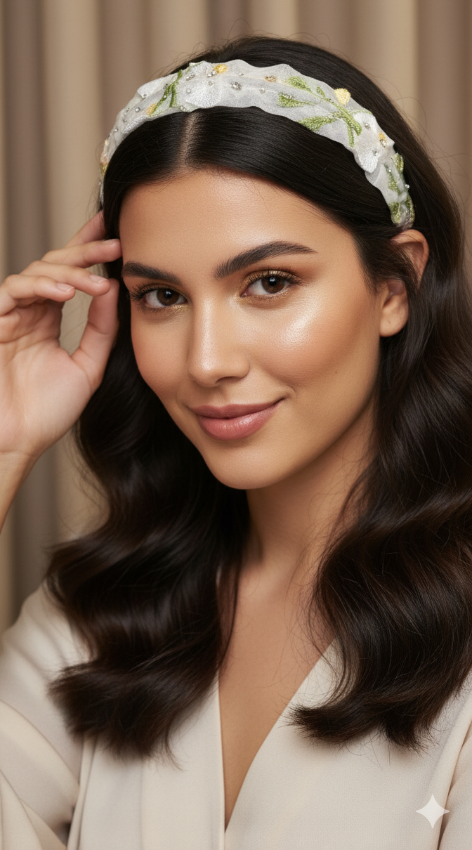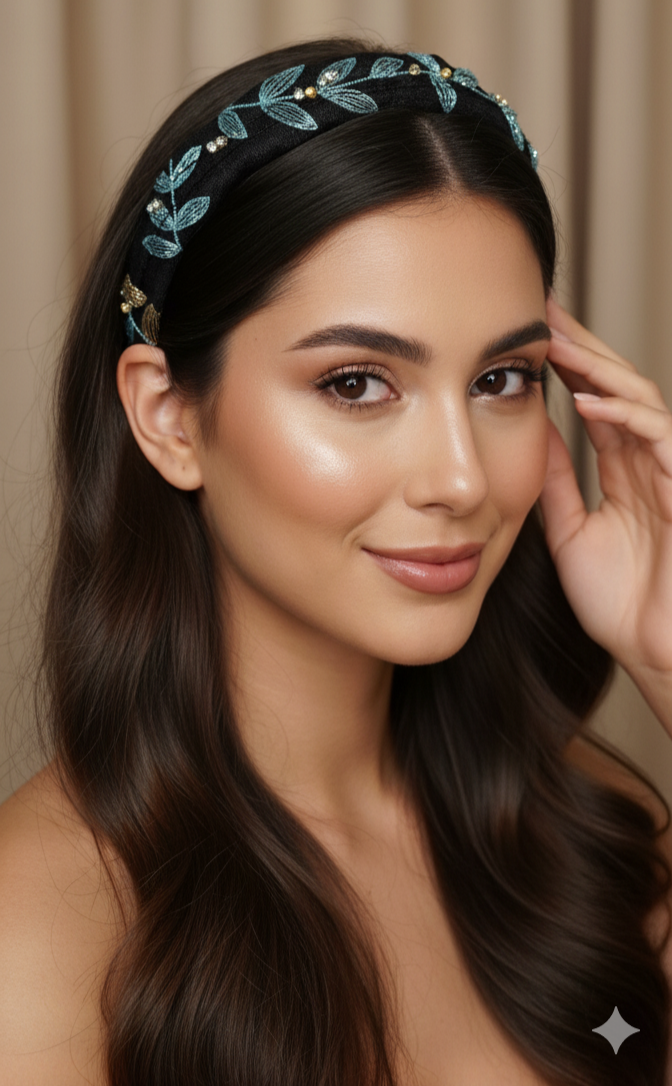Our Brown headband & diamante crystals makes a bold statement, wrapped in luxury, dripping in sparkle
